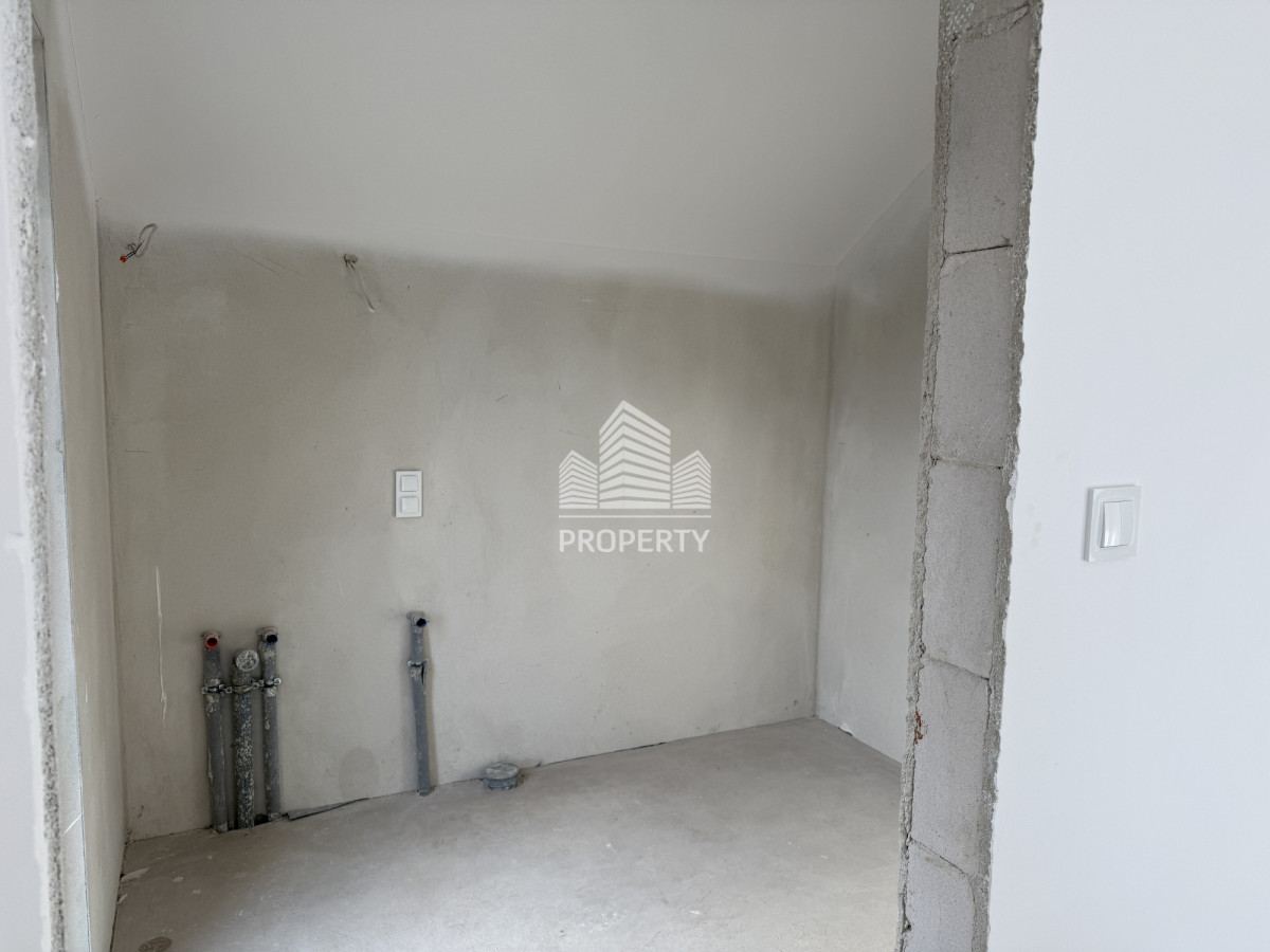 Dom gotowy do odbioru w stanie deweloperskim z gładziami na ścianach.
