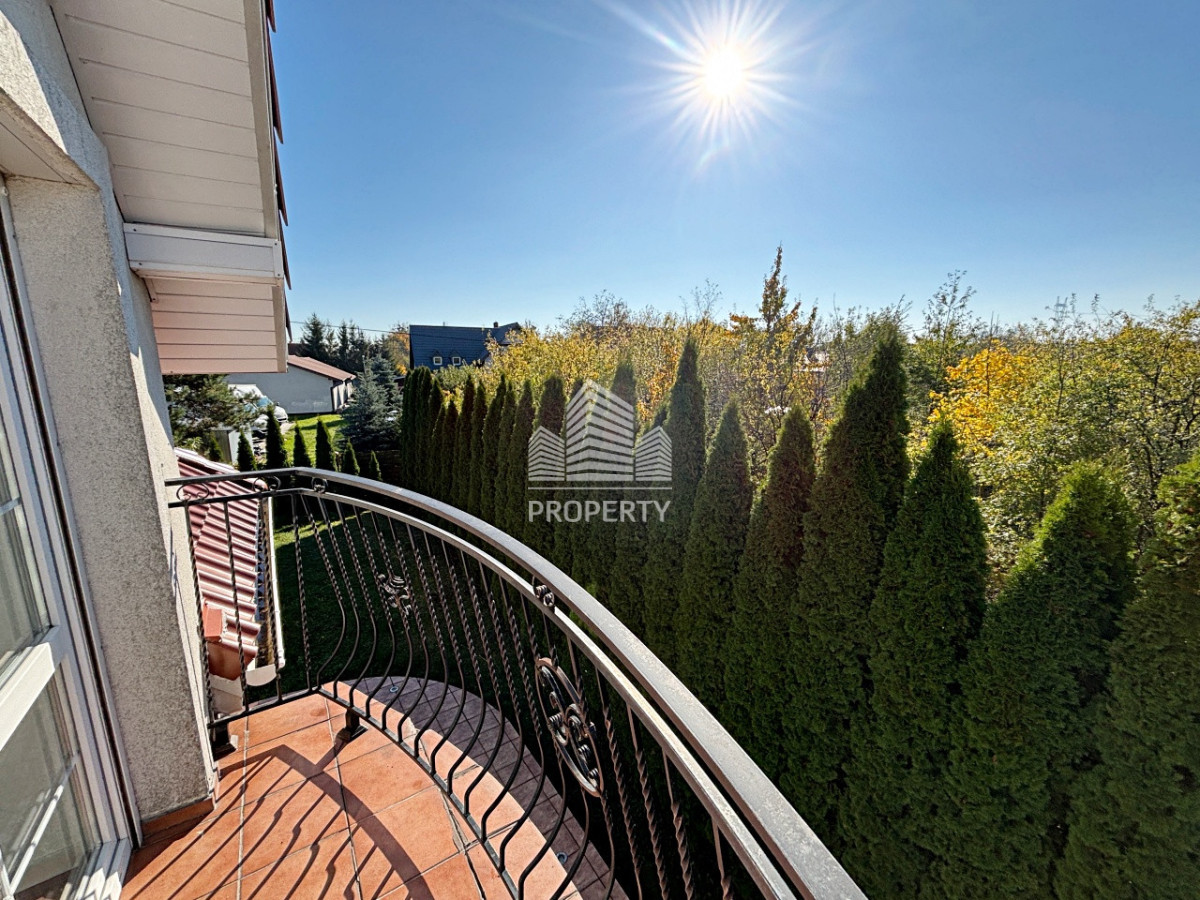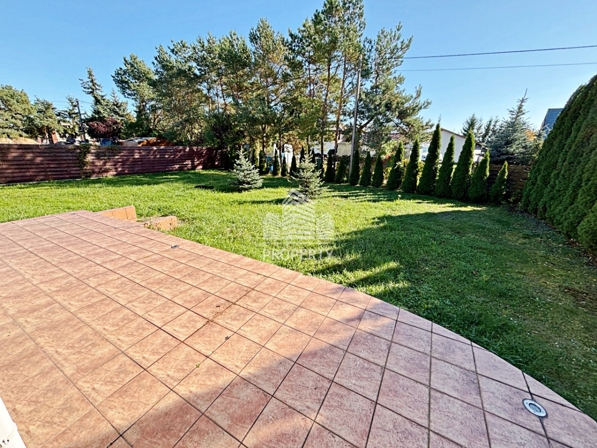 Teren obiektu ogrodzony, zadbany ogród z wysokimi tujami. Teren działki oświetlony. Zamontowany alarm.