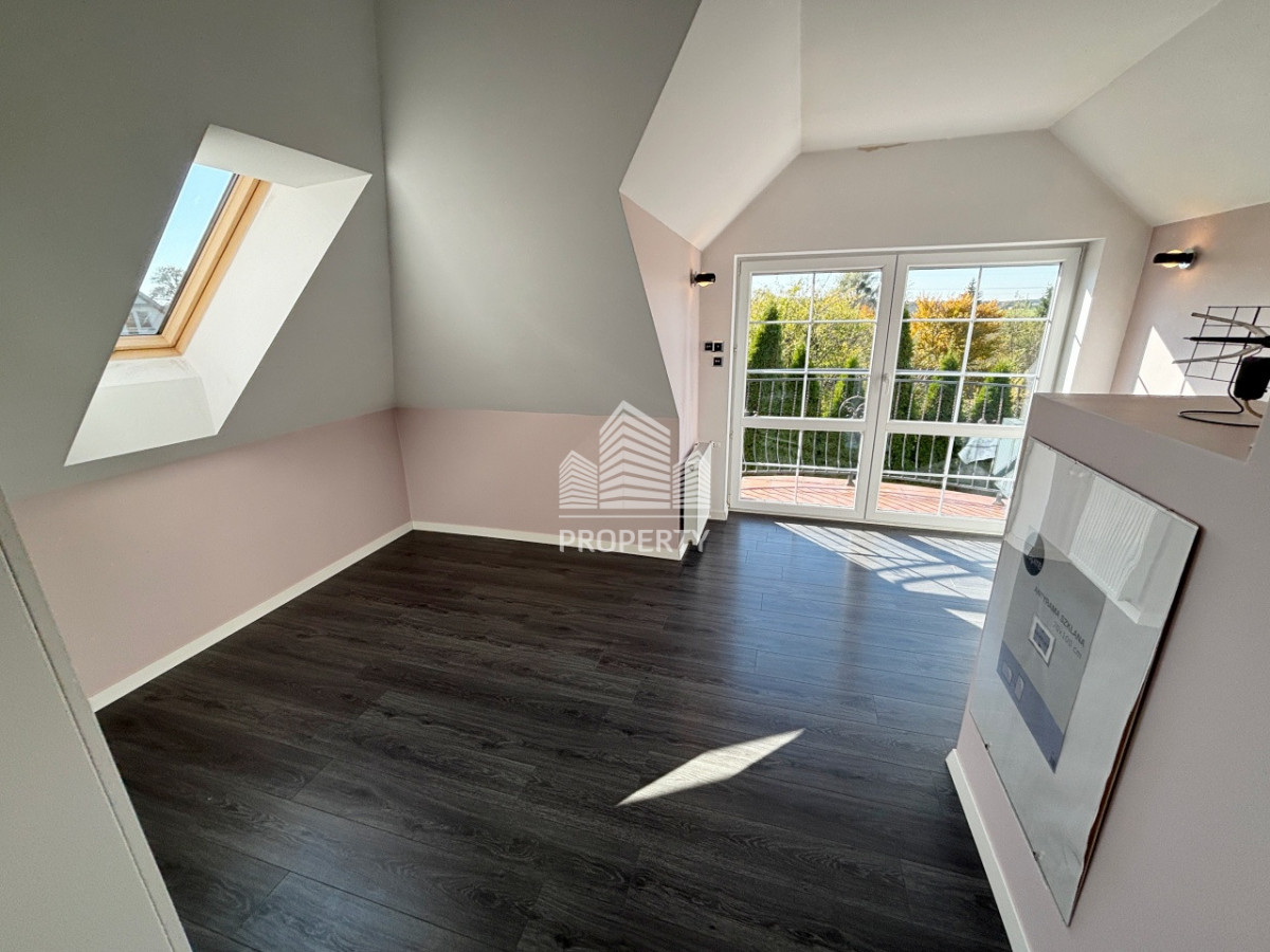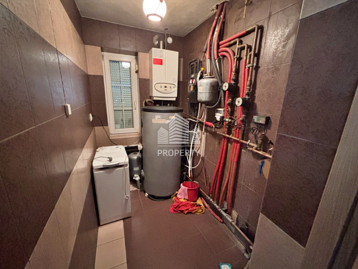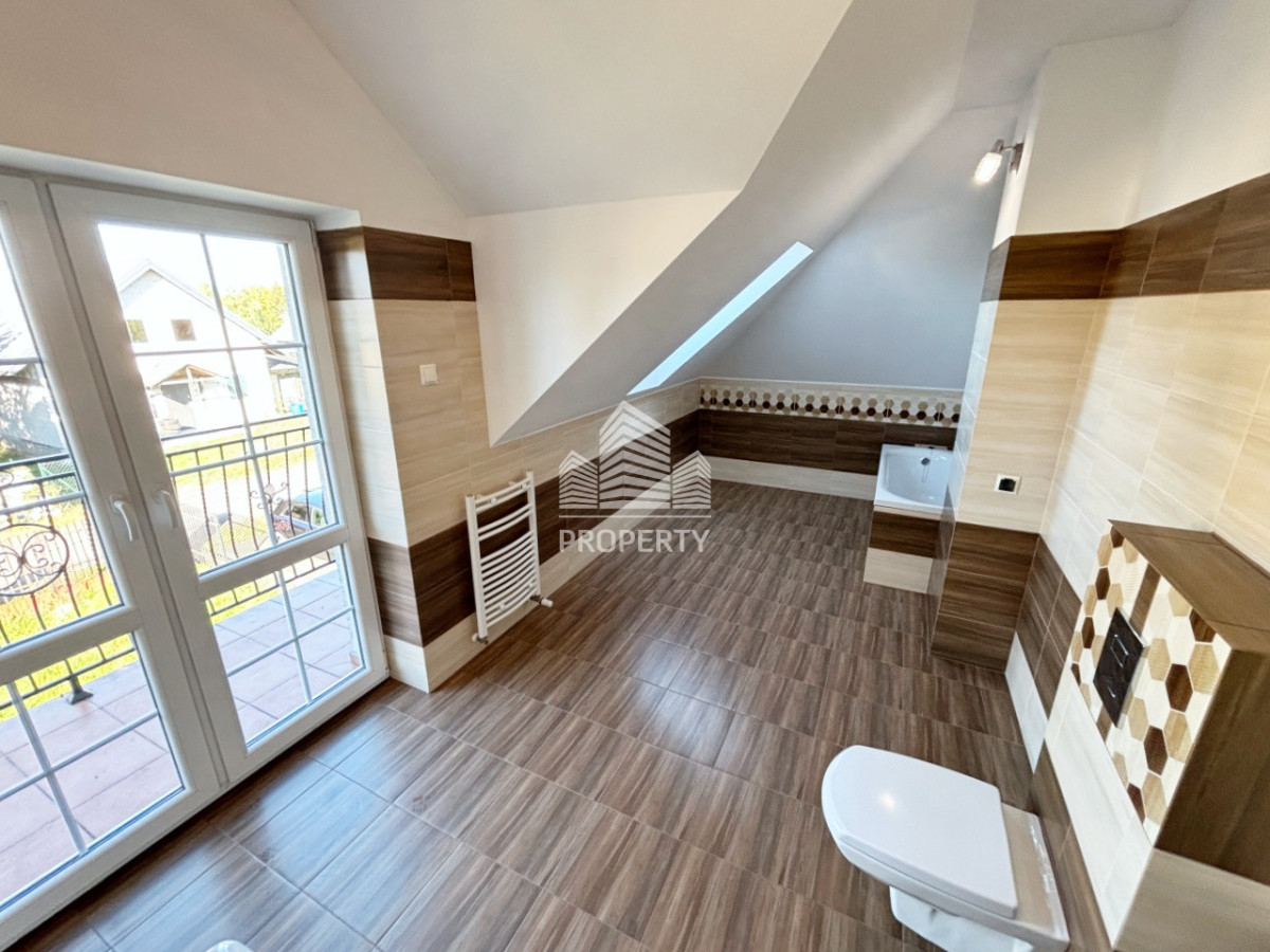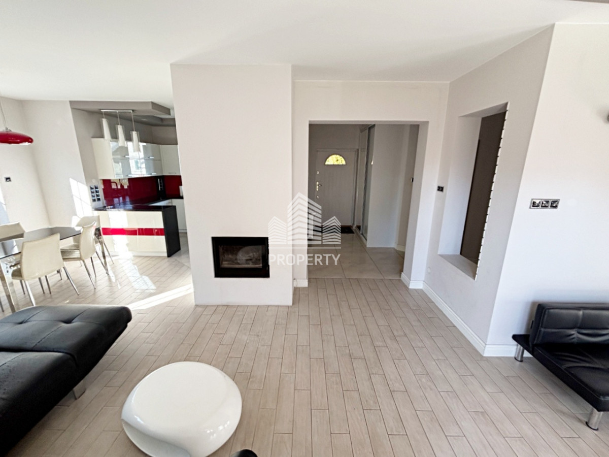 Kominek z płytą akumulacyjną w salonie.Piec kondensacyjny CO gazowy (gaz miejski), dwufunkcyjny. W 2013r zamontowano solary (3 lustra) i zasobnik 300L w zupełności wystarczający nawet dla 6 osobowej rodziny. W sezonie (czasami nawet w zimę w słoneczne dni) ciepła woda za darmo. Na parterze na całej powierzchni zamontowano ogrzewanie podłogowe, dodatkowo wzmocnione grzejnikiem panelowym przy wejściu i grzejnikiem kanałowym przy drzwiach tarasowych. Na I piętrze, przedpokój, gabinet (lub sypialnia) i łazienka również mają ogrzewanie podłogowe, w dwóch sypialniach zamontowano grzejniki. Wnętrze utrzymane w nowoczesnym stylu.