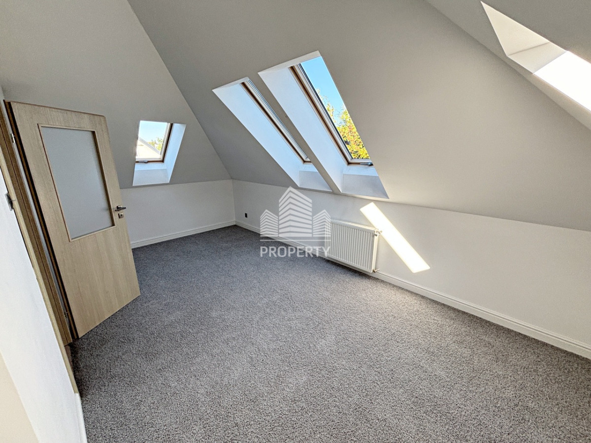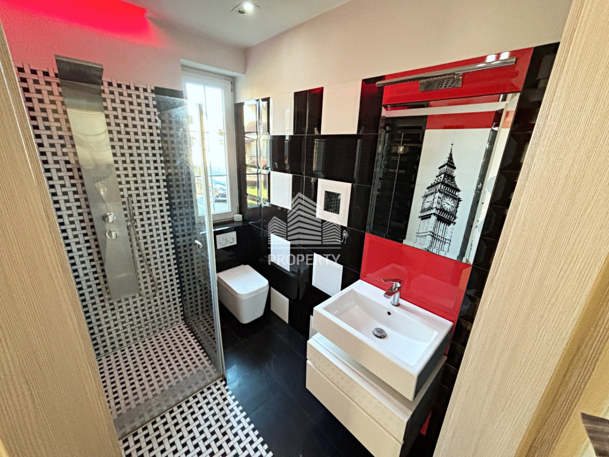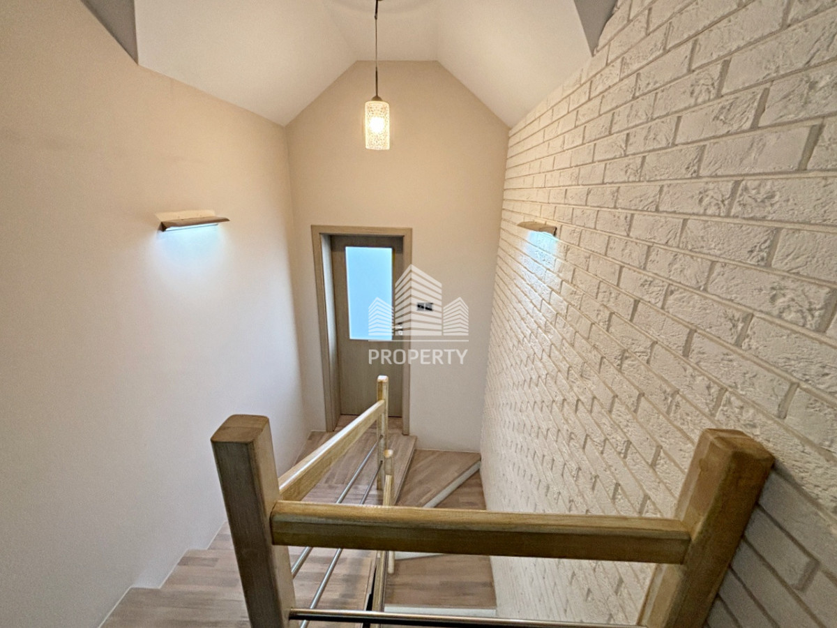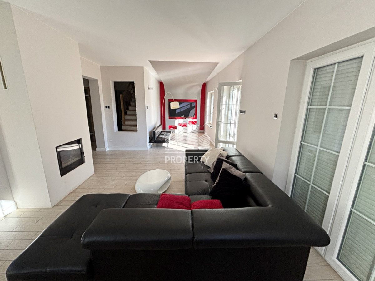 Kominek z płytą akumulacyjną w salonie.Piec kondensacyjny CO gazowy (gaz miejski), dwufunkcyjny. W 2013r zamontowano solary (3 lustra) i zasobnik 300L w zupełności wystarczający nawet dla 6 osobowej rodziny. W sezonie (czasami nawet w zimę w słoneczne dni) ciepła woda za darmo. Na parterze na całej powierzchni zamontowano ogrzewanie podłogowe, dodatkowo wzmocnione grzejnikiem panelowym przy wejściu i grzejnikiem kanałowym przy drzwiach tarasowych. Na I piętrze, przedpokój, gabinet (lub sypialnia) i łazienka również mają ogrzewanie podłogowe, w dwóch sypialniach zamontowano grzejniki. Wnętrze utrzymane w nowoczesnym stylu.