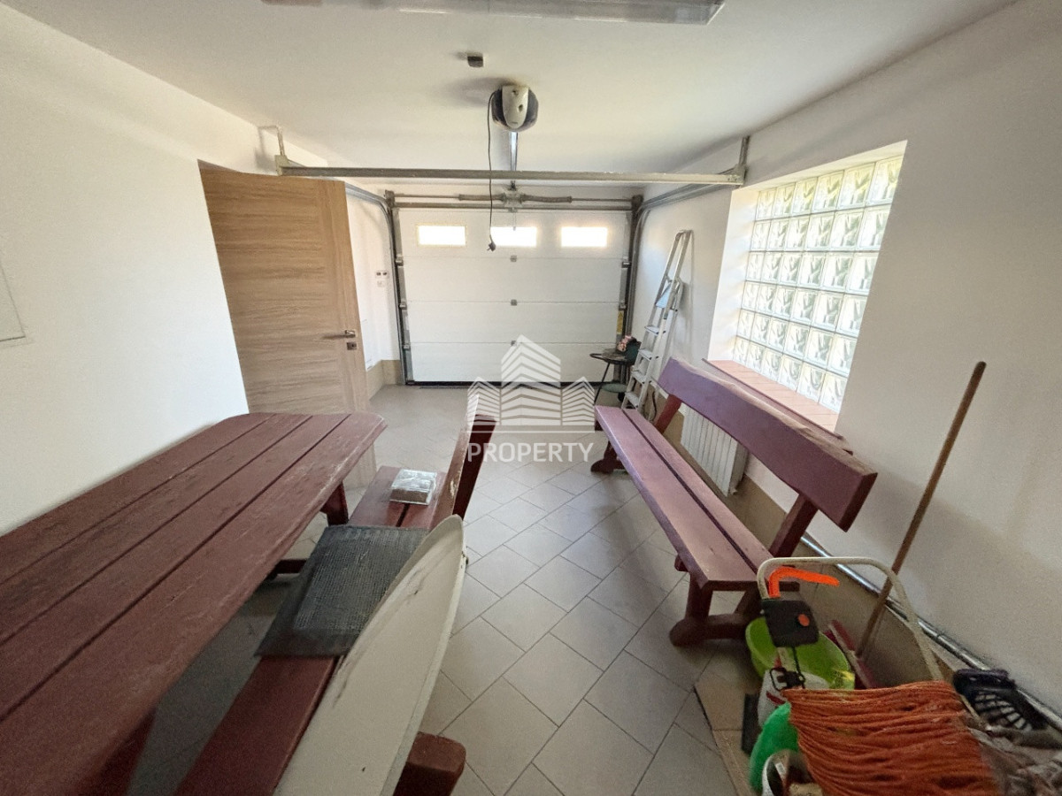 Strop teriva. Okna dachowe Roto, drzwi wejściowe antywłamaniowe Gerda GWX20, brama garażowa poszerzona o 30cm (275cm) otwierana na pilota firmy Wiśniowski. Okna firmy Oknovid, profil schuco, we wszystkich oknach rolety antywłamaniowe, elektrycznie podnoszone i opuszczane ( z wyjątkiem łazienek - mechaniczne otwieranie).