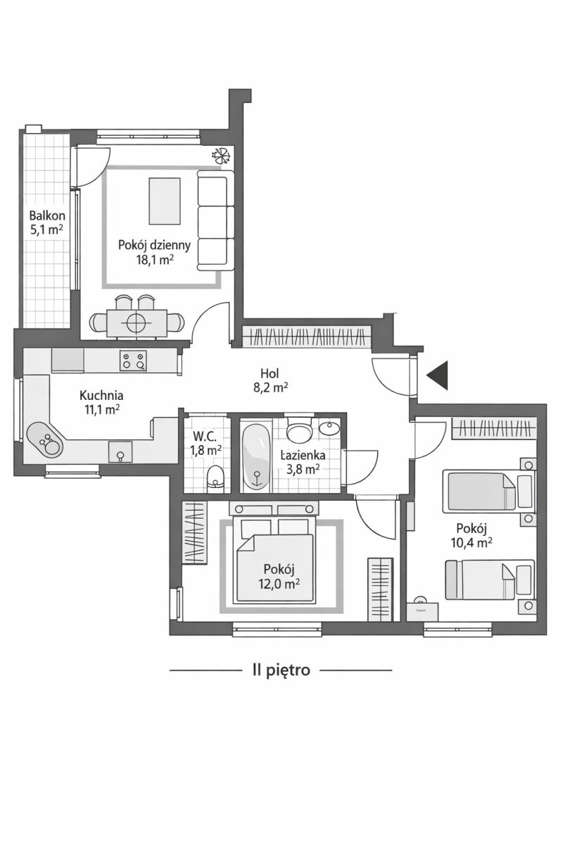 Mieszkanie dwustronne, składa się z: