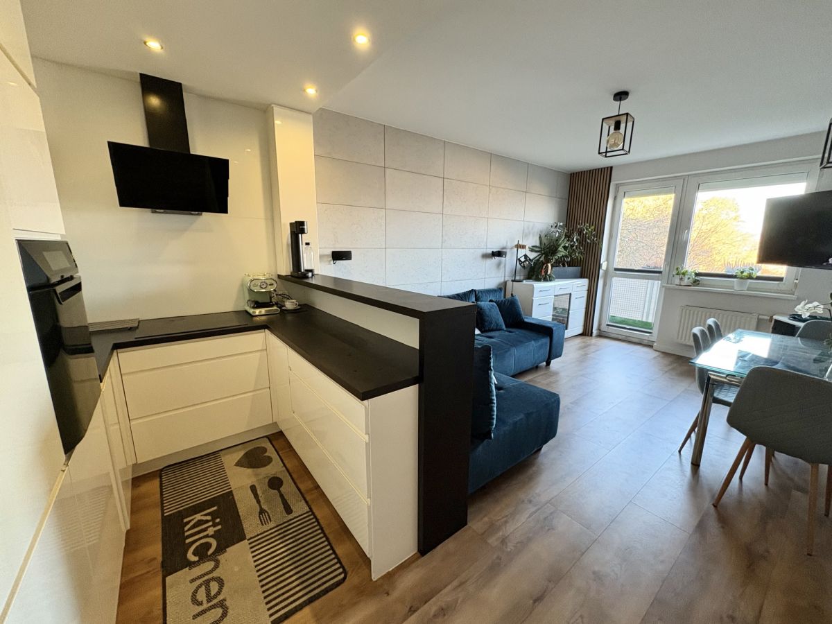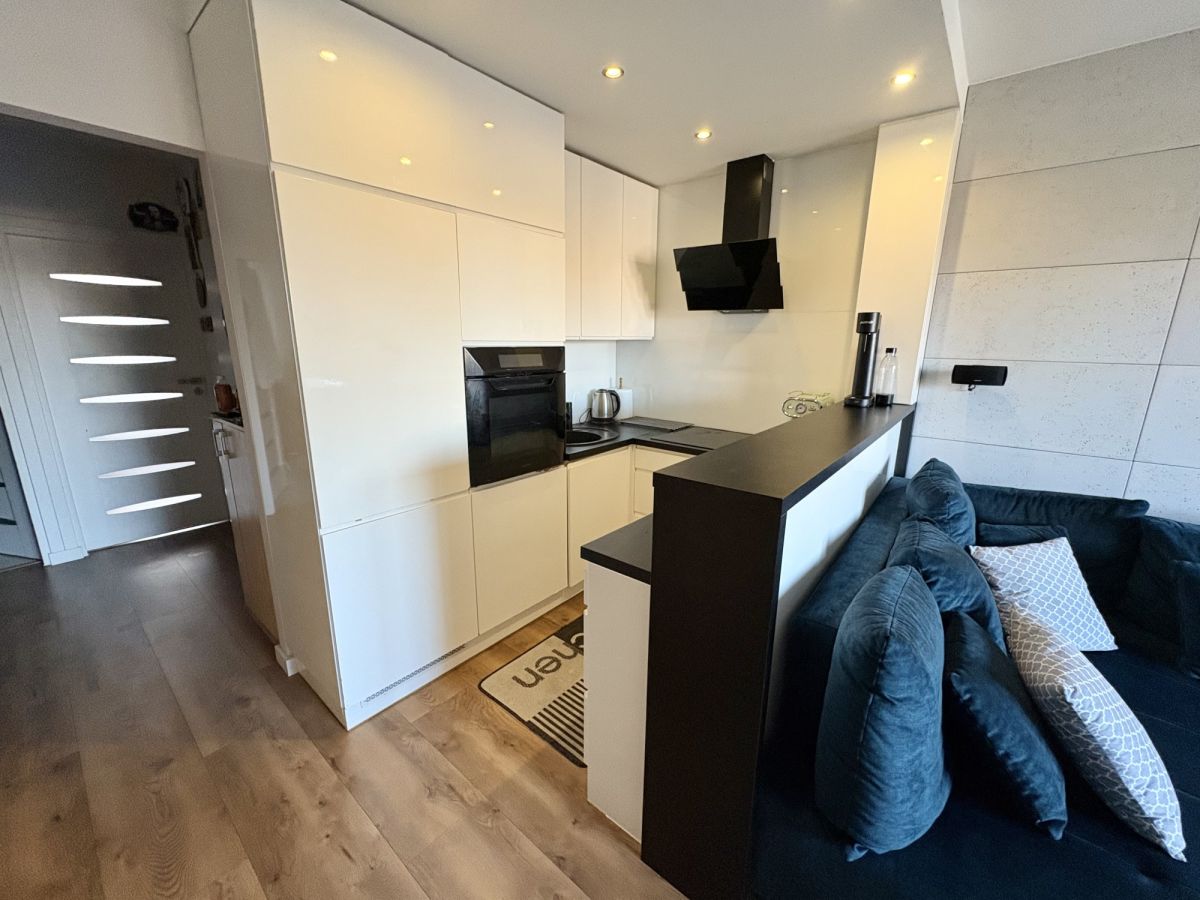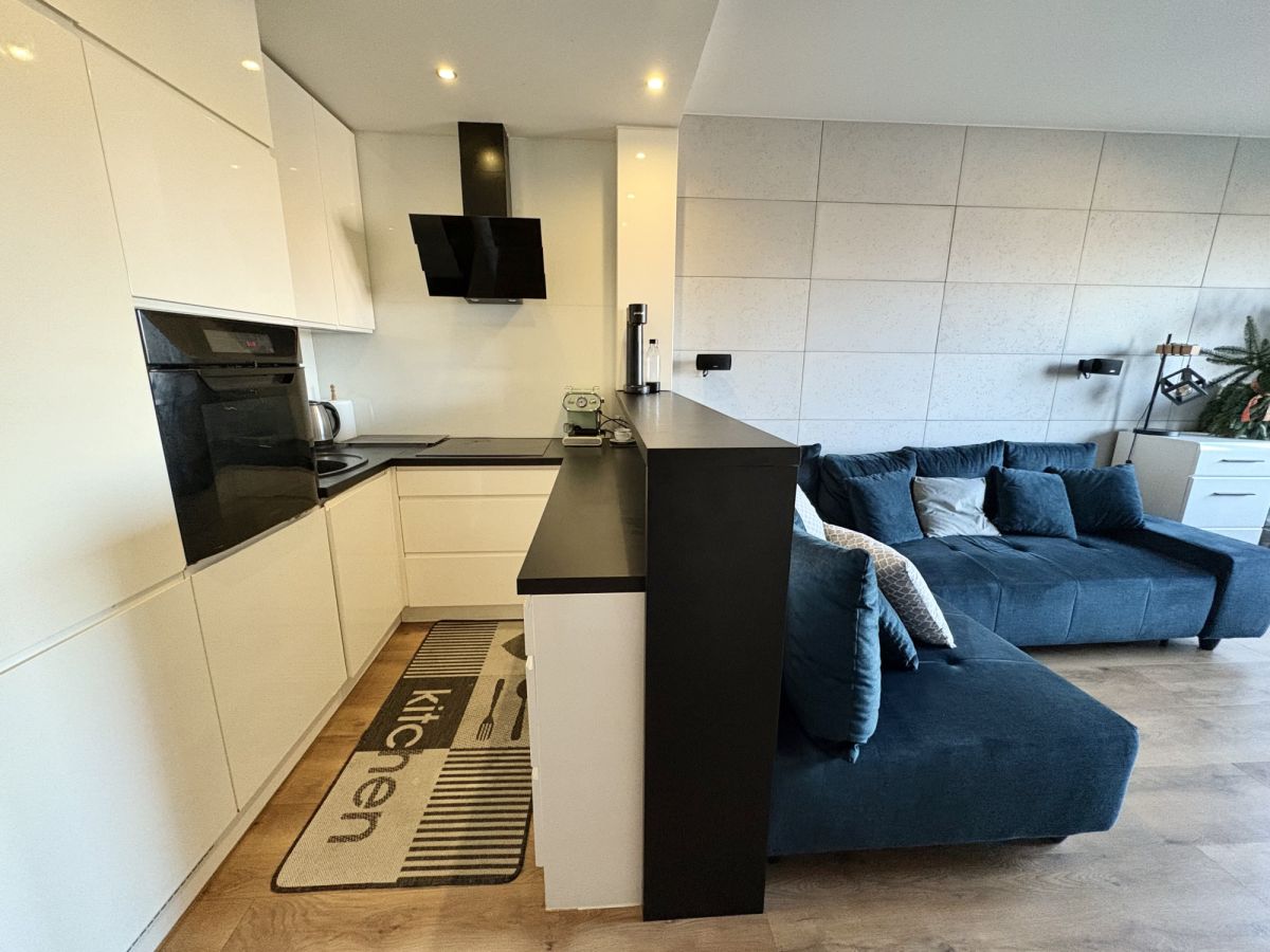 - Salon z aneksem kuchennym i dużym balkonem z widokiem na morze