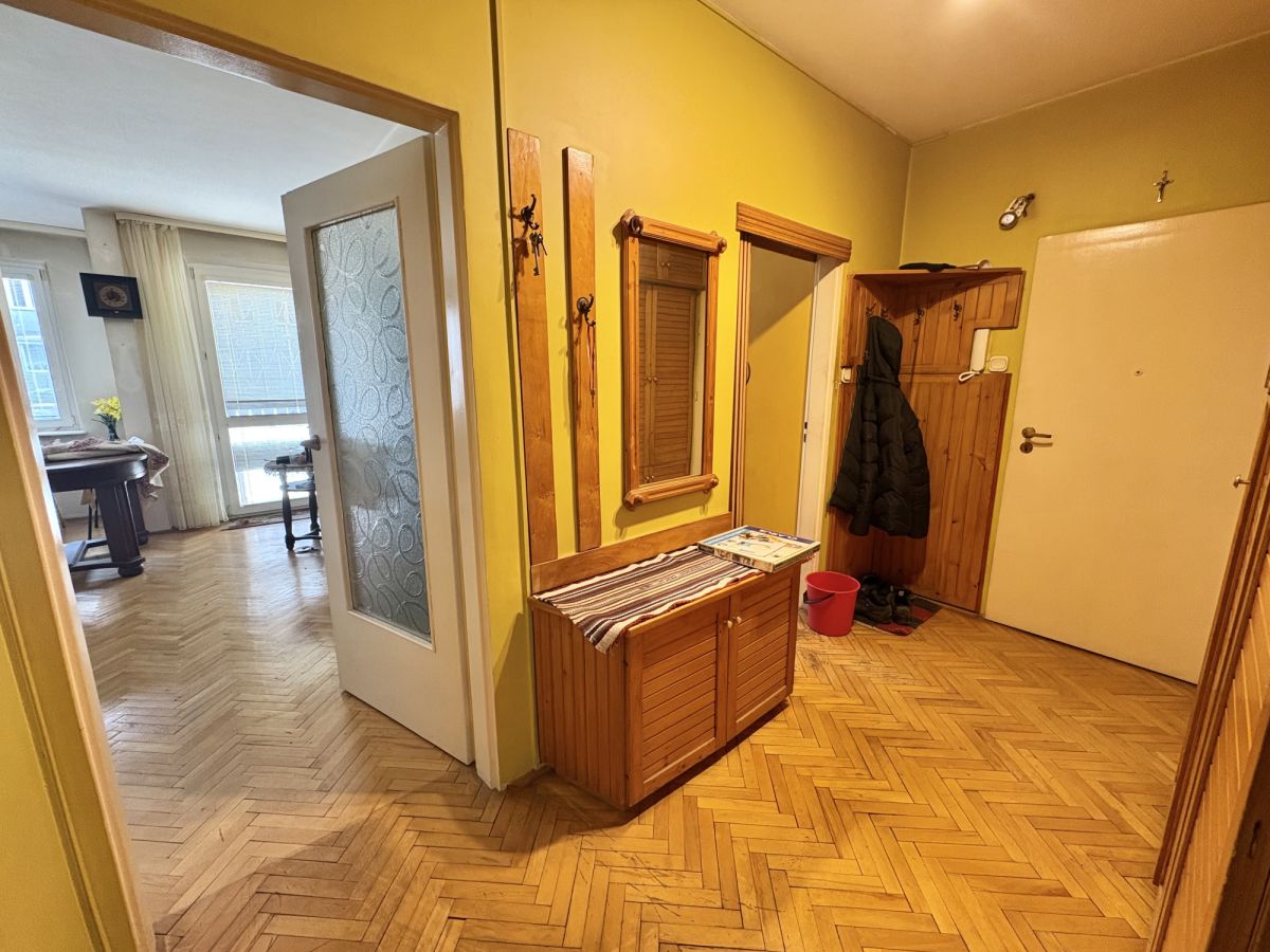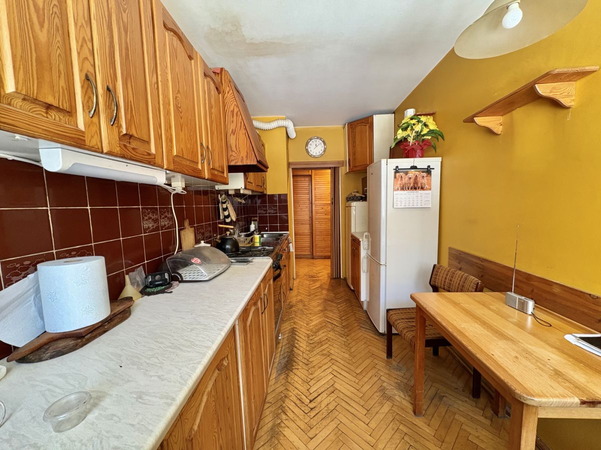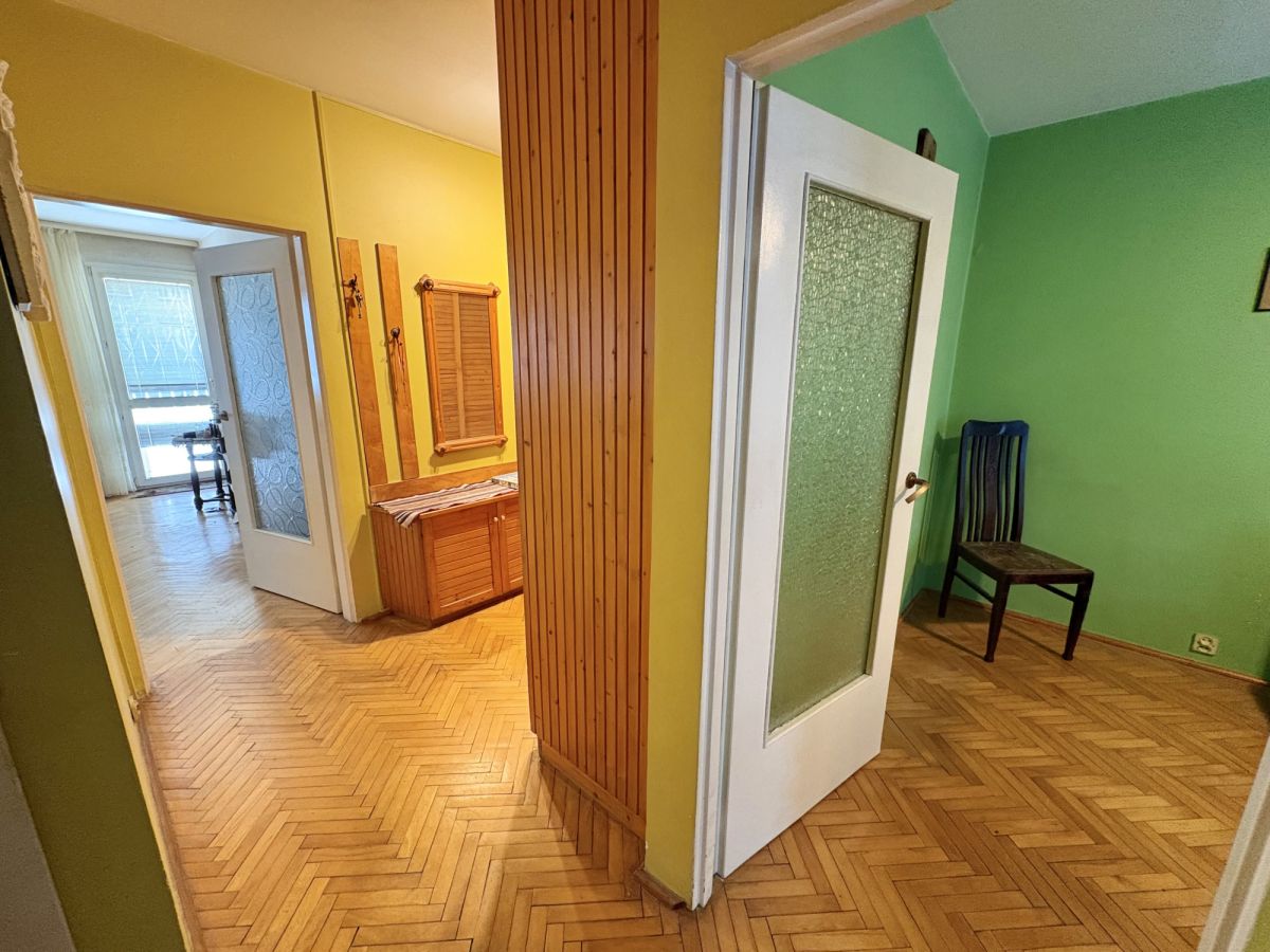 W całym mieszkaniu parkiet, w dobrym stanie, do wycyklinowania