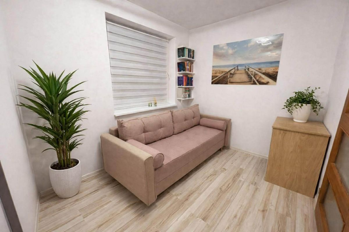 - Salonu z aneksem kuchennym i wyjściem na przestronny ogród z tarasem ok.100m2