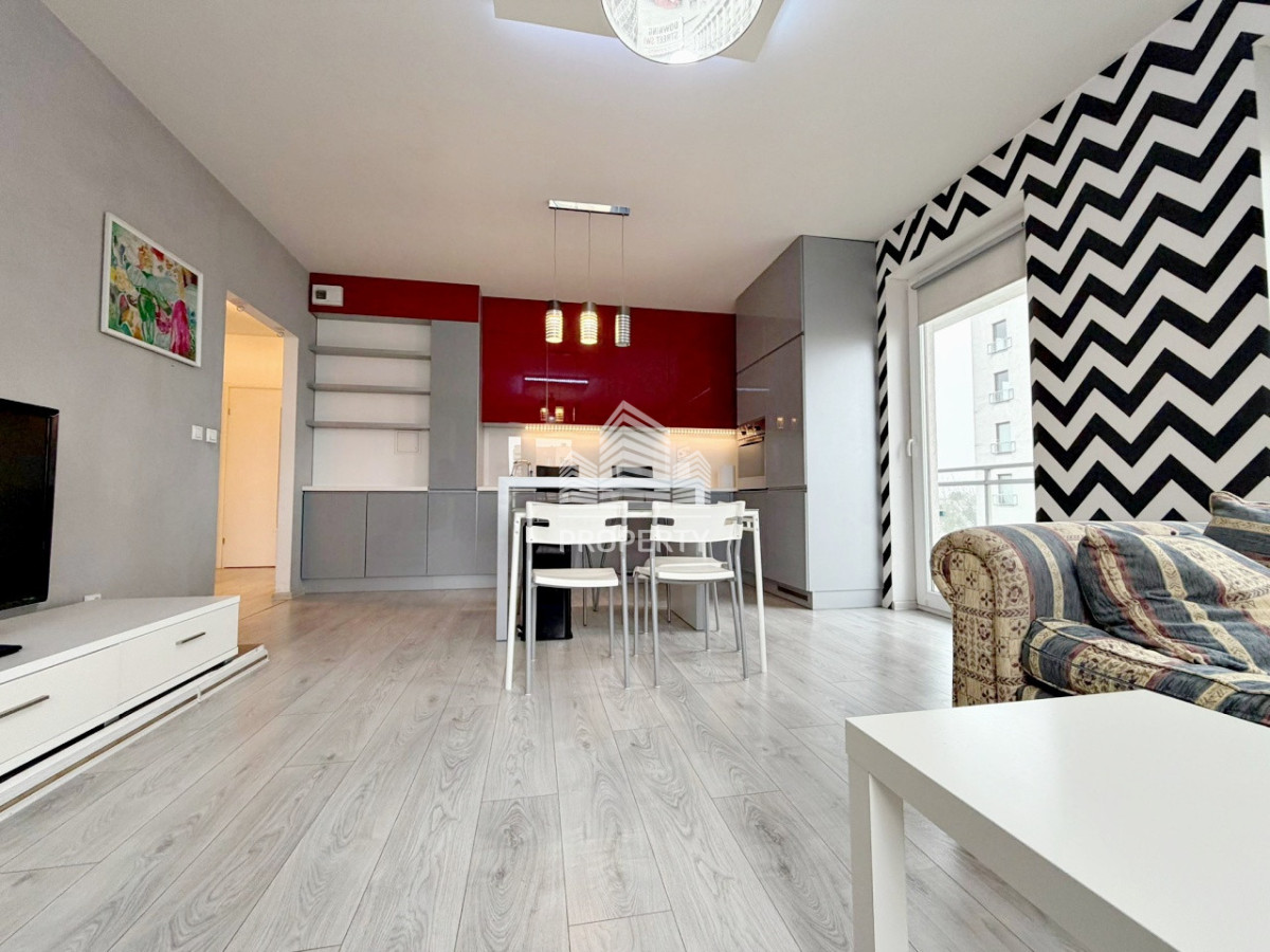 Układ: salon z aneksem kuchennym, 2 pokoje, łazienka, przedpokój