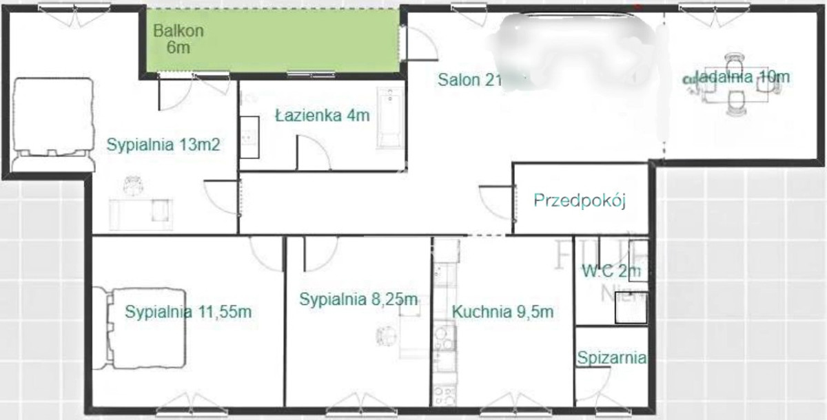 - przestronny salon ok.30 m2 z jadalnią (możliwość dodatkowego pokoju), z wyjściem na balkon typu loggia ok.6m2,