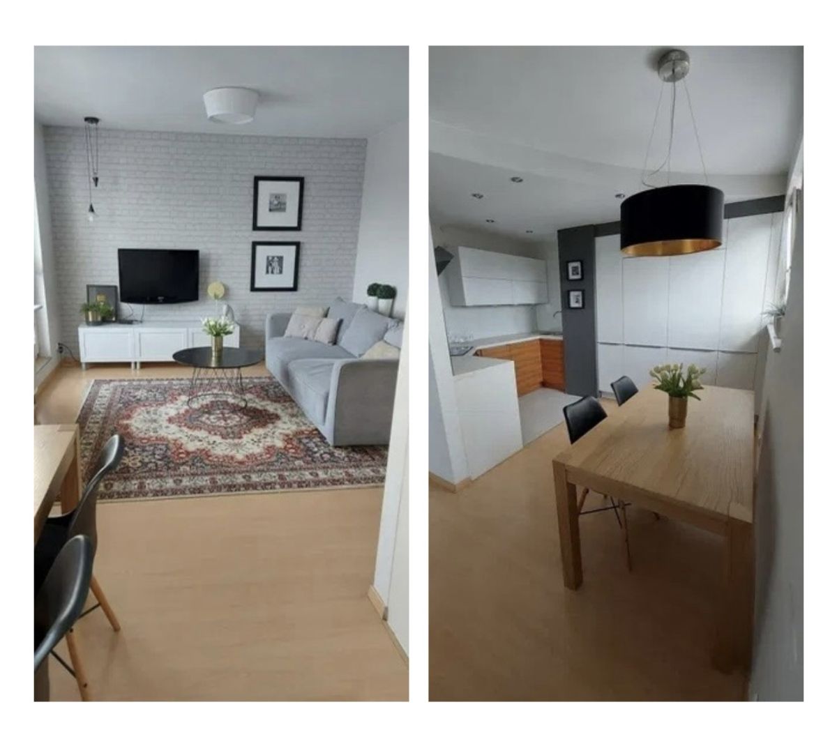 Salon z aneksem kuchennym + 2 oddzielne pokoje, łazienka. Pełne wyposażenie mieszkania, na piętrze własna komórka lokatorska.