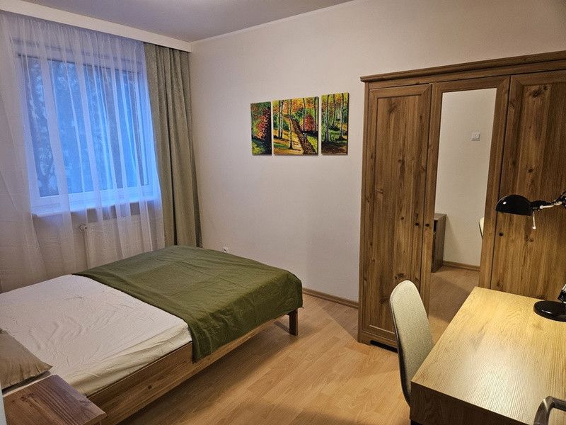 Kuchnia w pełni wyposażona - zmywarka, kuchenka elektryczna, piekarnik elektryczny, kuchenka mikrofalowa, lodówka z zamrażalnikiem, stolik z krzesłami. Reszta mieszkania jest też w pełni umeblowana i wyposażona.