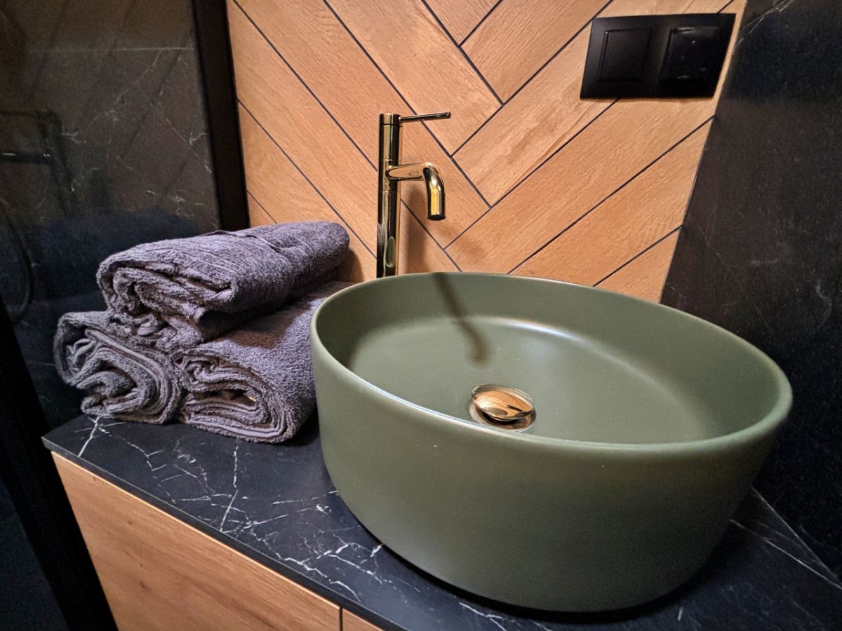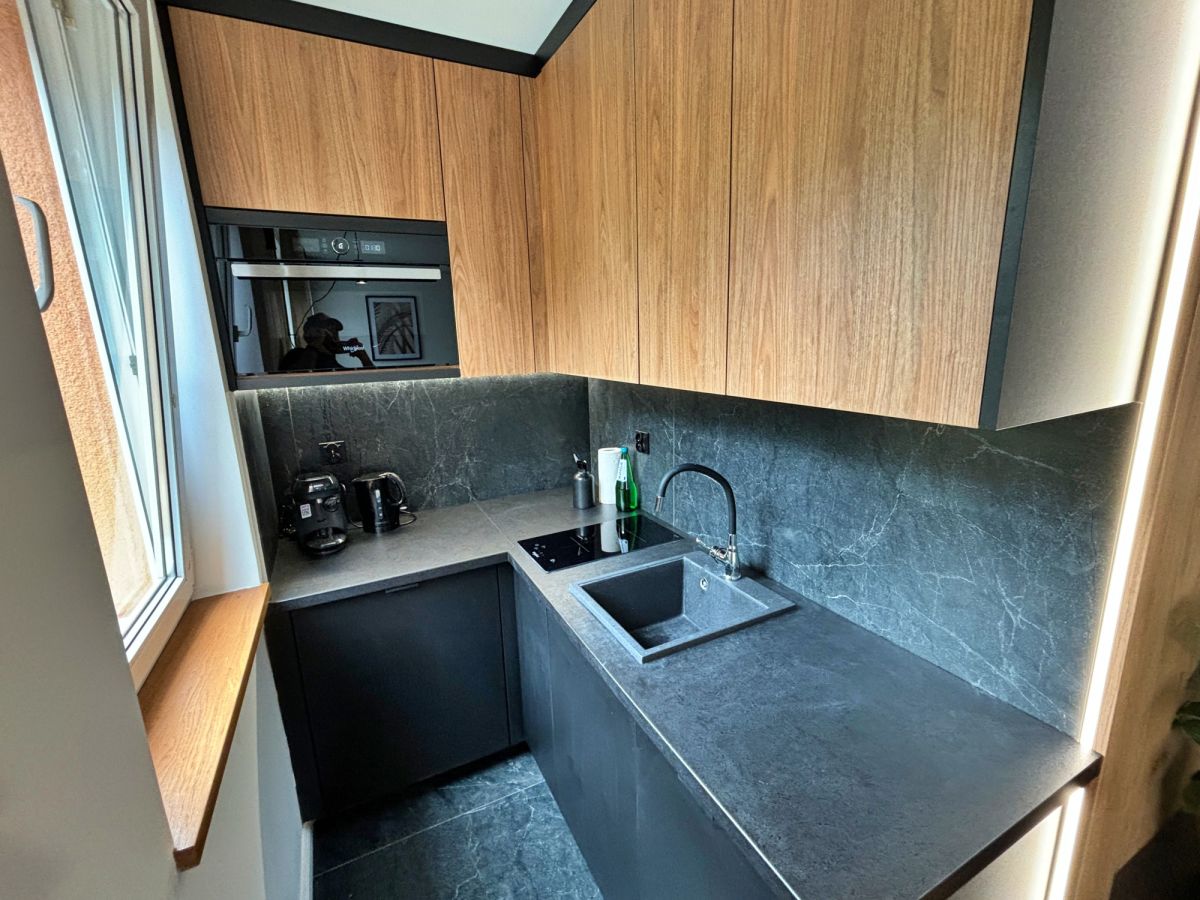 - kuchnia: piekarnik z mikrofalą, zmywarka, lodówka, płyta indukcyjna, ekspres do kawy, naczynia