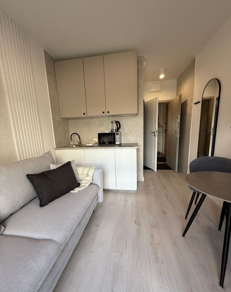 Mam kawalerkę na wynajem o powierzchni 16 m². Znajduje się na parterze nowoczesnego osiedla Solano wybudowanego w 2025 roku. Wnętrze jest w pełni umeblowane, z wysokiej jakości sprzętem, w tym pralką, zmywarką i telewizorem. Idealne dla singla lub studenta!
