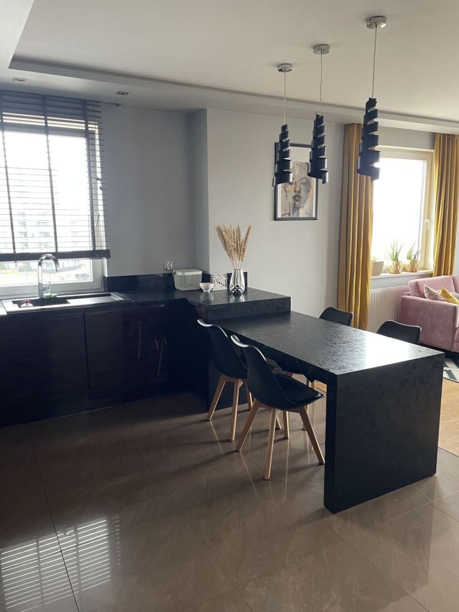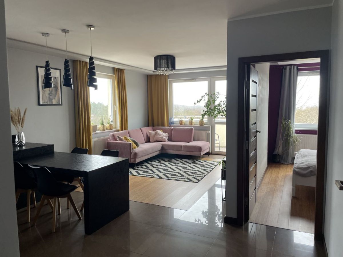 Na wynajem komfortowe, 3-pokojowe mieszkanie położone na 5. piętrze w nowoczesnym, 7-piętrowym budynku z windą. Z balkonu widok na morze!