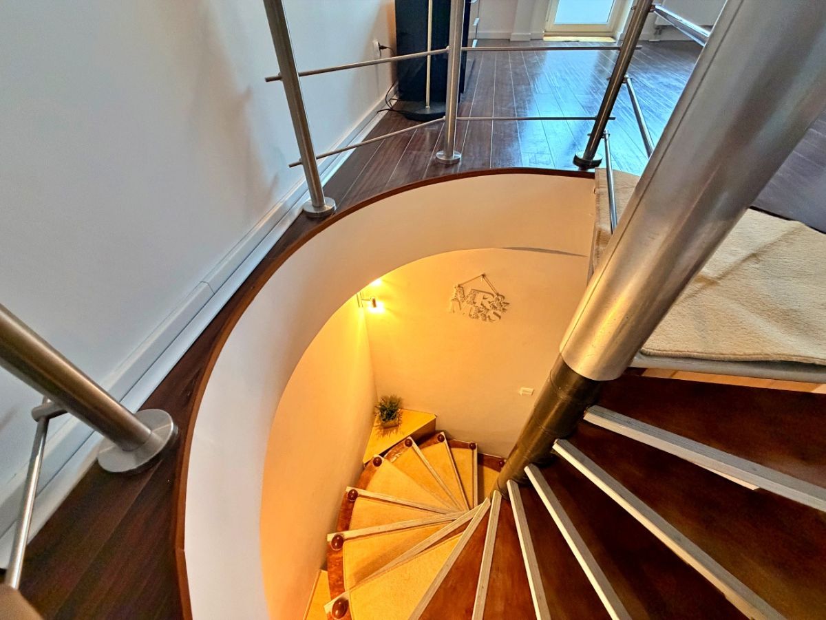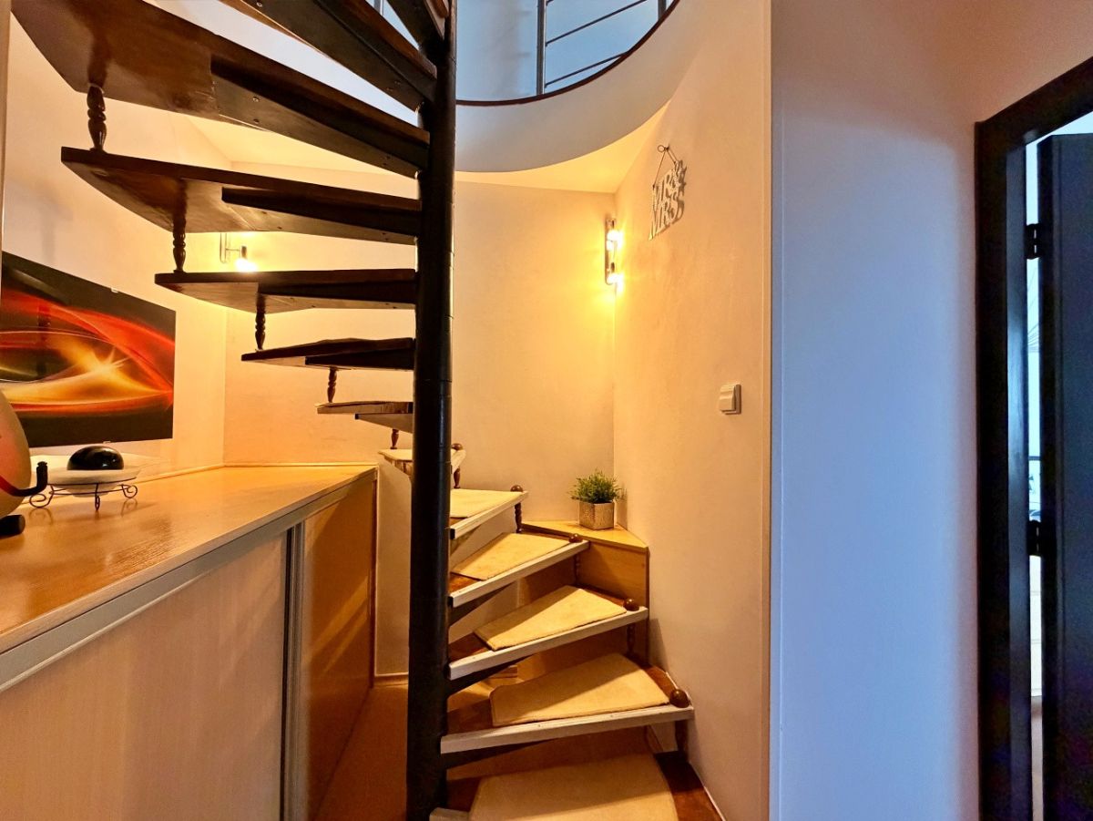 - Dodatkowe WC oraz efektowne, ażurowe drewniane schody, które nadają wnętrzu charakteru.