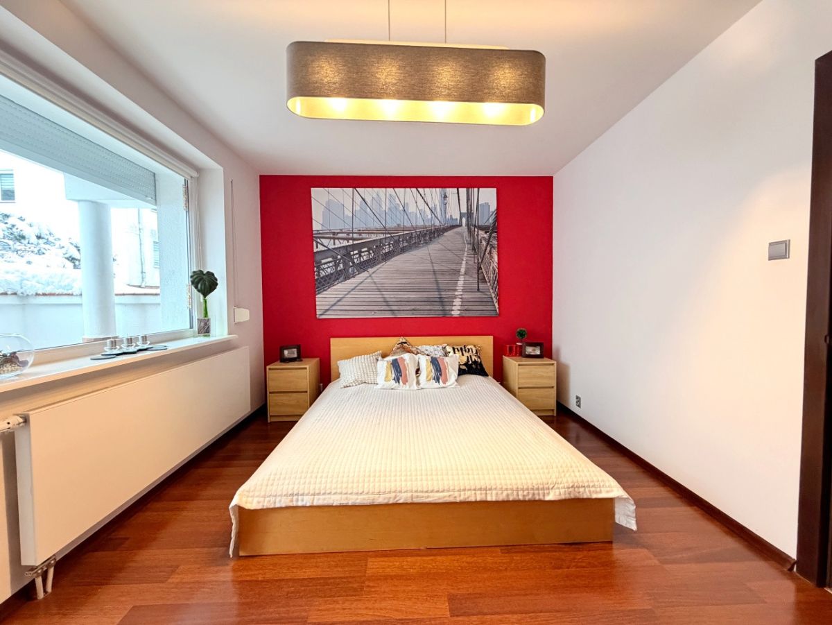 - Duża, ustawna sypialnia z bezpośrednim wyjściem na taras, zapewniająca komfort i prywatność.