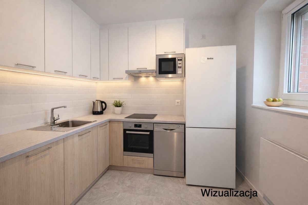- Oddzielna kuchnia z oknem - do własnej aranżacji, dająca pełną swobodę projektową (lodówka, zmywarka, piekarnik)