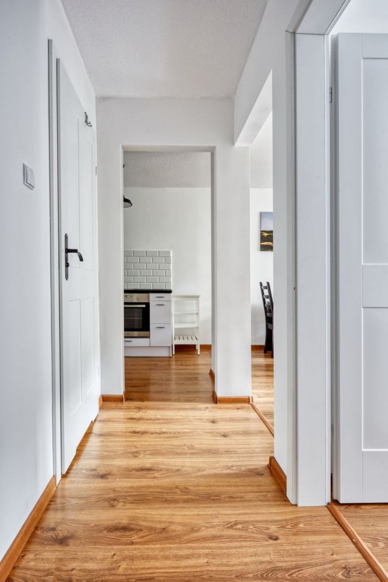 Mieszkanie jest w pełni wyposażone i estetycznie urządzone. W czerwcu było odmalowane. Składa się z salonu z aneksem kuchennym, łazienki i sypialni, posiada balkon z widokiem na zieleń.