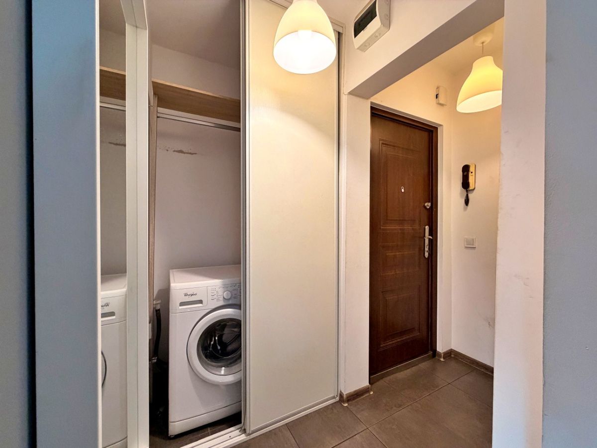 - Korytarz z dwoma pojemnymi szafami w zabudowie (jedna pełni funkcję garderoby)