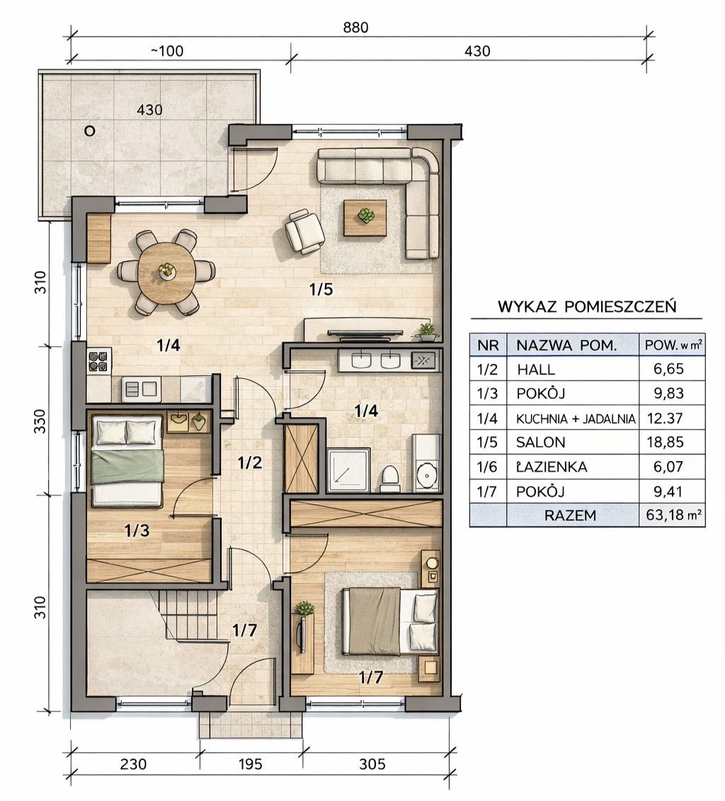 - 2 Miejsca postojowe bezpośrednio przy mieszkaniu